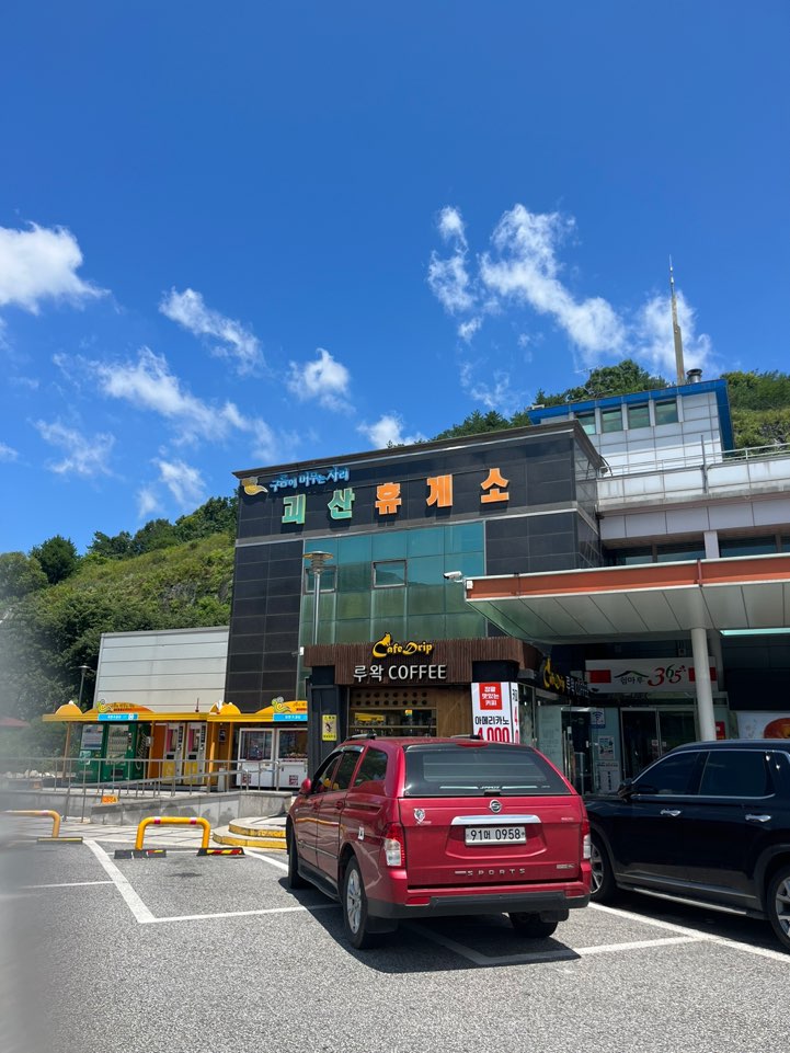 앞의 포스팅에서도 언급했듯이 으니의 체력을 위해 전날 인천으로 이동하기로 한 우리 가족. 점심쯤 이른 하원을 해서 롯데리아에서 가벼운 간식을 먹으며 퇴근할 아빠를 기다렸다. 여행 떠나는 날이라 그런지 감자튀김 먹으며 워크북하는 기다림의 시간이 지루하지 않고 설렘만 가득했다. 날씨도 좋고, 기분도 좋은 7월의 오후! 12시쯤에 드디어 출발했다. 중간에 괴산휴게소에 들러 돈가스, 가락국수로 가벼운 점심을 먹었는데, 반가운 신전떡볶이가 있어 지나치지 못하고 함께 먹었다. 요즘 휴게소에는 자동화된 커피집을 많이 볼 수 있어 으니도 신기한지 기계다방을 한참 구경하다 갔다. 어쩌다 보니 실제 커피는 엔제리너스에서 마시게 되었지만?